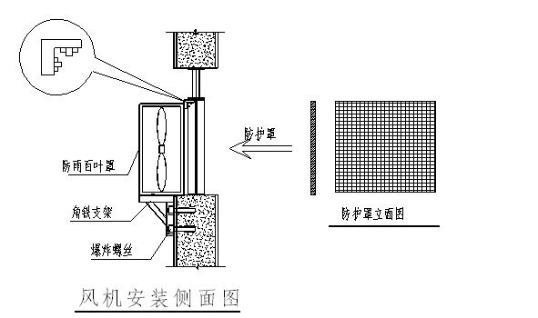 8、百葉窗負(fù)壓風(fēng)機(jī)安裝好后,應(yīng)將防雨百葉罩栓住,以免刮大風(fēng)將蓋掀下。