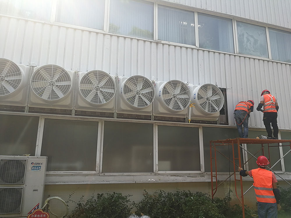 負(fù)壓風(fēng)機(jī)+環(huán)??照{(diào)(工業(yè)冷風(fēng)機(jī))組合的方案,負(fù)壓風(fēng)機(jī)的主要作用是通風(fēng)換氣,增加空氣的流動(dòng),帶走空氣中的悶熱;環(huán)??照{(diào)(工業(yè)冷風(fēng)機(jī))輸送涼風(fēng)的特點(diǎn),吹進(jìn)廠房?jī)?nèi)容、一方面直接吹人、一方面整體改善悶熱。